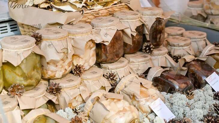 На ярмарках также можно найти сушёные грибы — подосиновики, подберёзовики, опята, маслята, моховики, белые грибы и лисички. Кроме того, на прилавках представлены маринованные осенние и зимние опята.