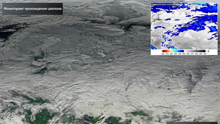 "Роскосмос" показал фото снежного циклона над Москвой